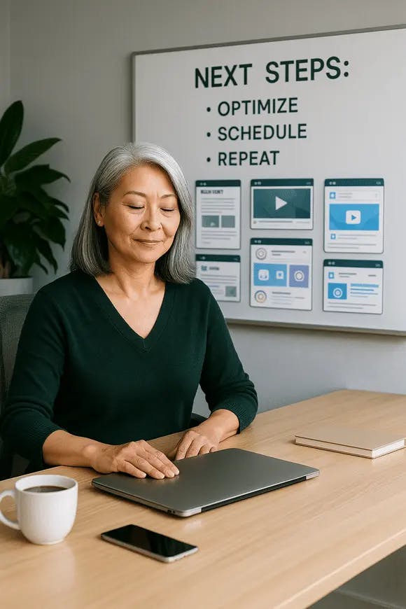Your next step? Start with one article. Repurpose it into three formats using what you’ve learned. Then analyze, adjust, and repeat. Track engagement, optimize based on performance, and refine your system as you go. With each cycle, your repurposing strategy becomes more efficient, your results more consistent, and your message more powerful — across every corner of your digital presence.